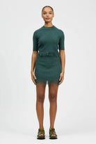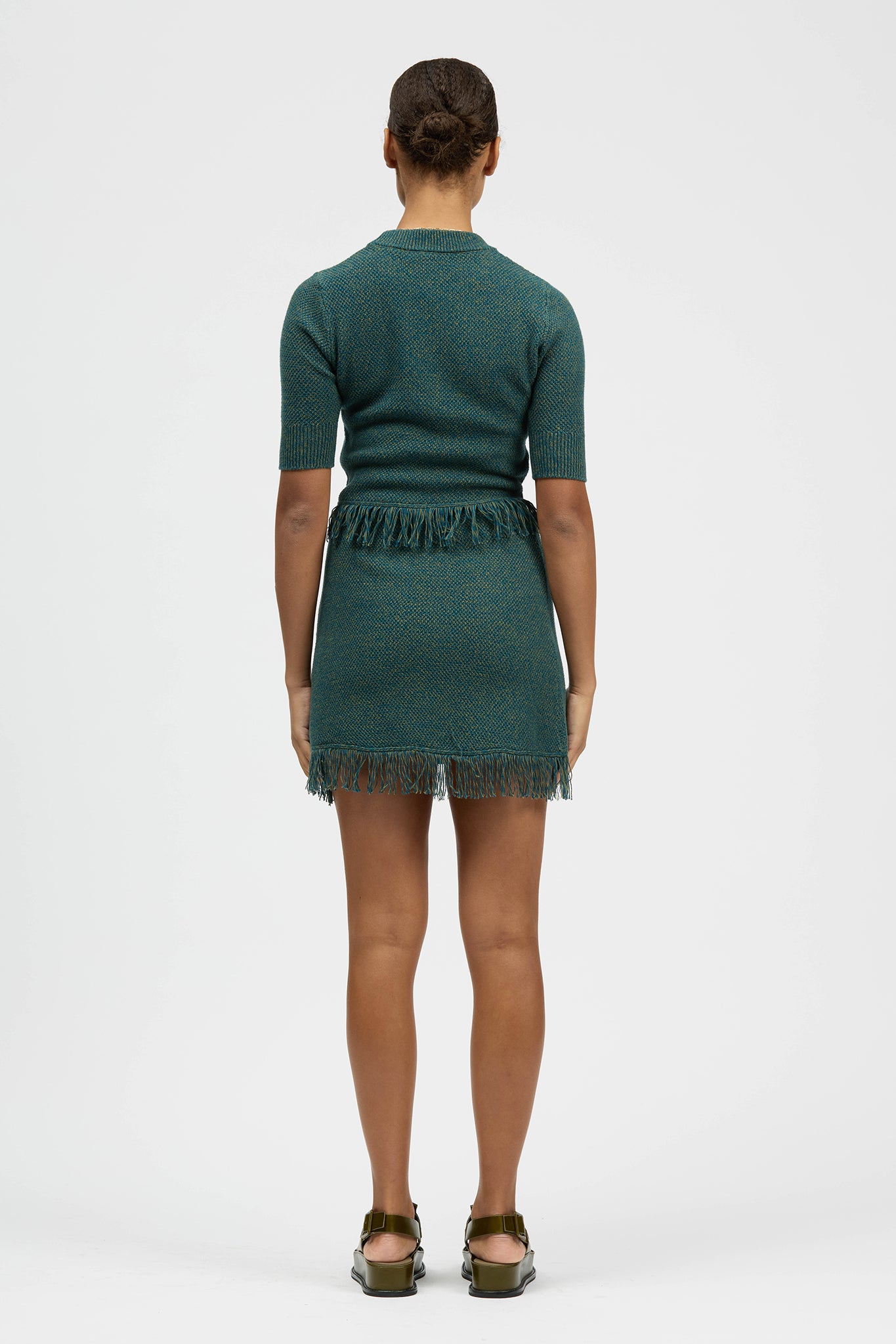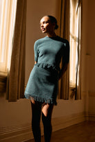 The Borla Top is a cropped knit style with half sleeves, featuring fringe detailing along the sleeve edges and body hemline. Made in 100% textured cotton. This style can be paired with your existing wardrobe favourites or with the Borla Skirt in matching fabric as a set.