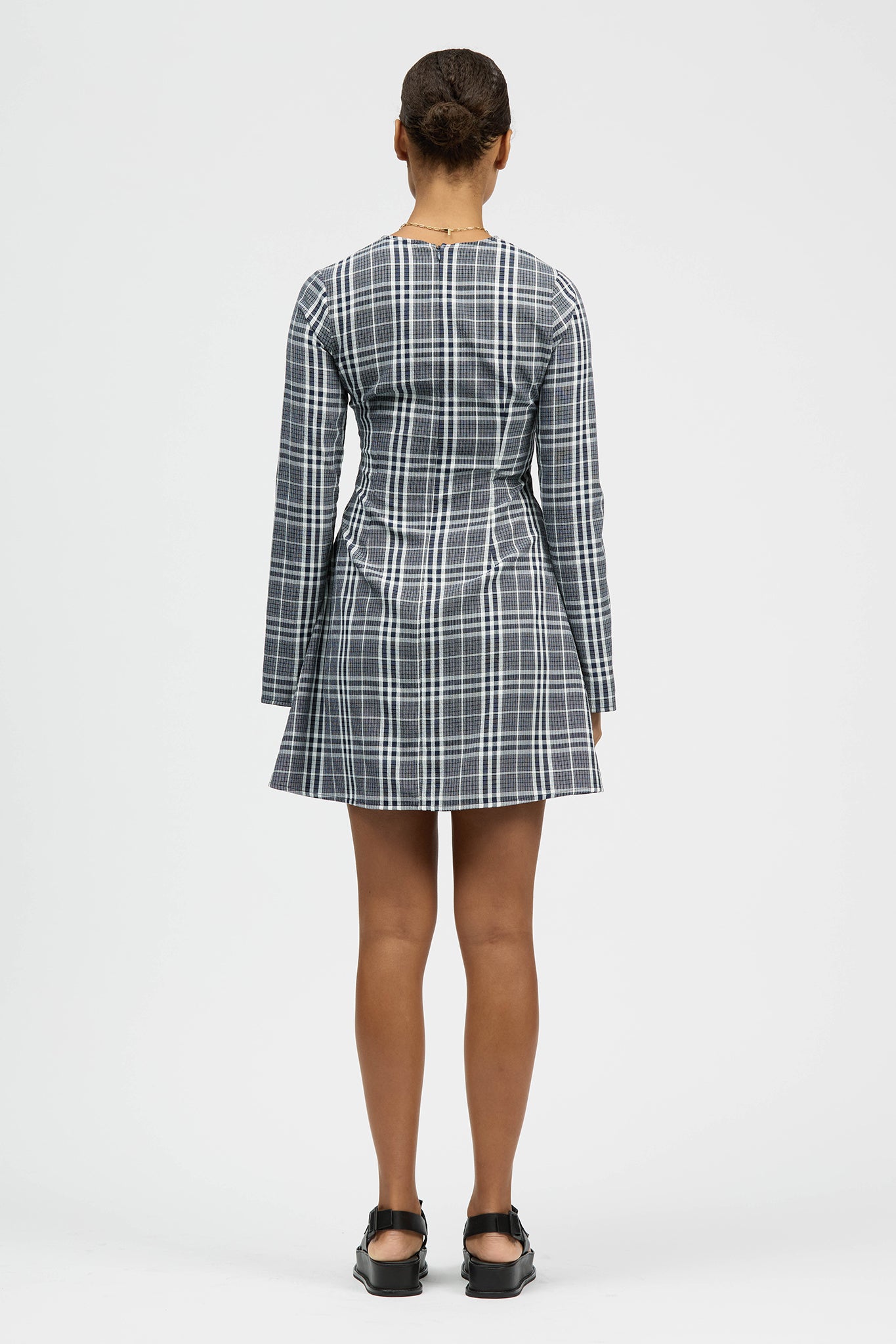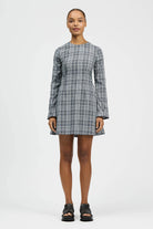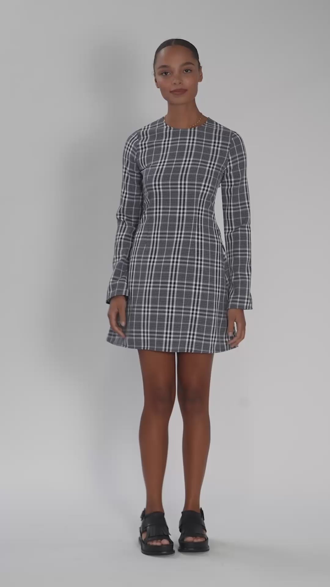 The Motlawa Dress is a mini-length style, with full-length flare sleeves and a round neckline. This style offers back darts for a tailored fit around the bodice and flares out towards the hem, fastening with a centre-back invisible zip. Made in a textured seersucker polyester blend with stretch.