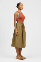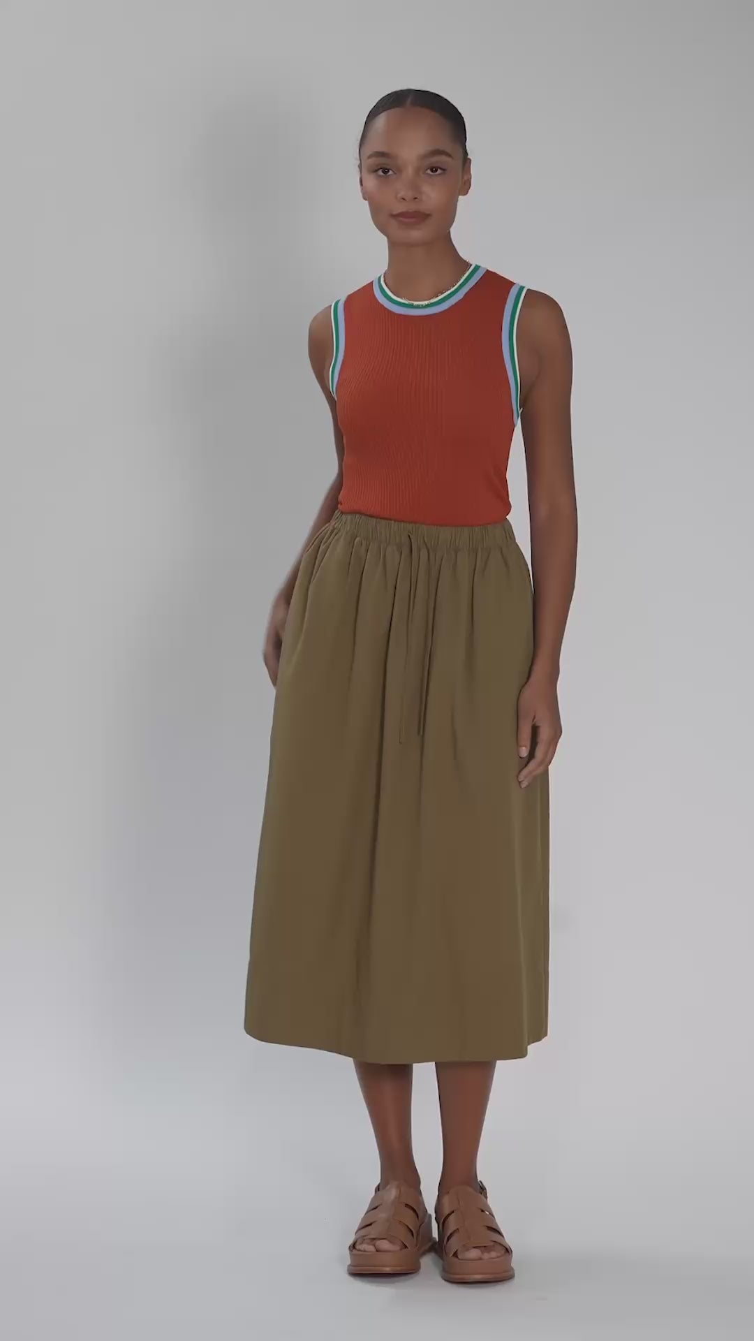 The Osa Singlet Top is a fitted style featuring a contrast stripe detail at the neckline and armhole. Made in a lightweight Viscose/Nylon blend.