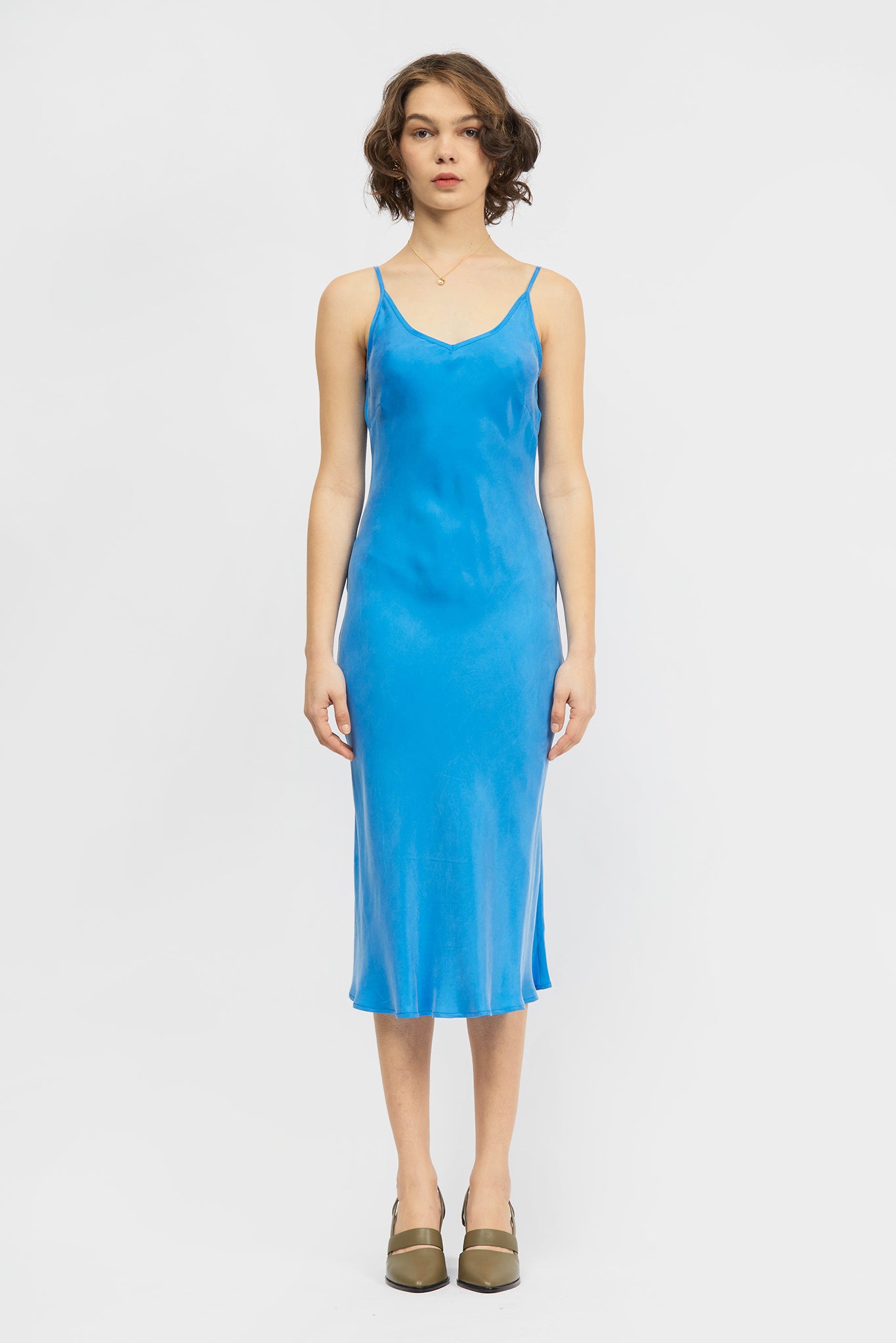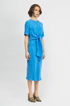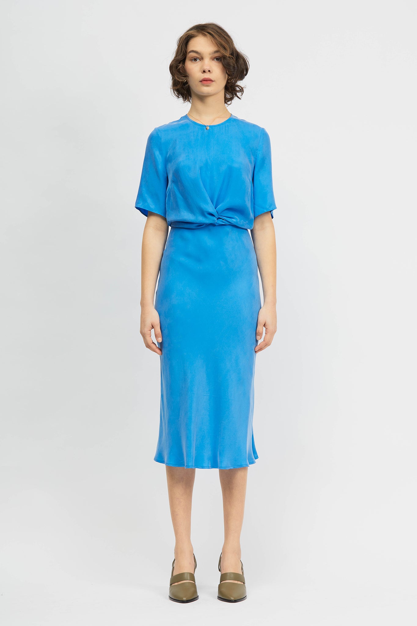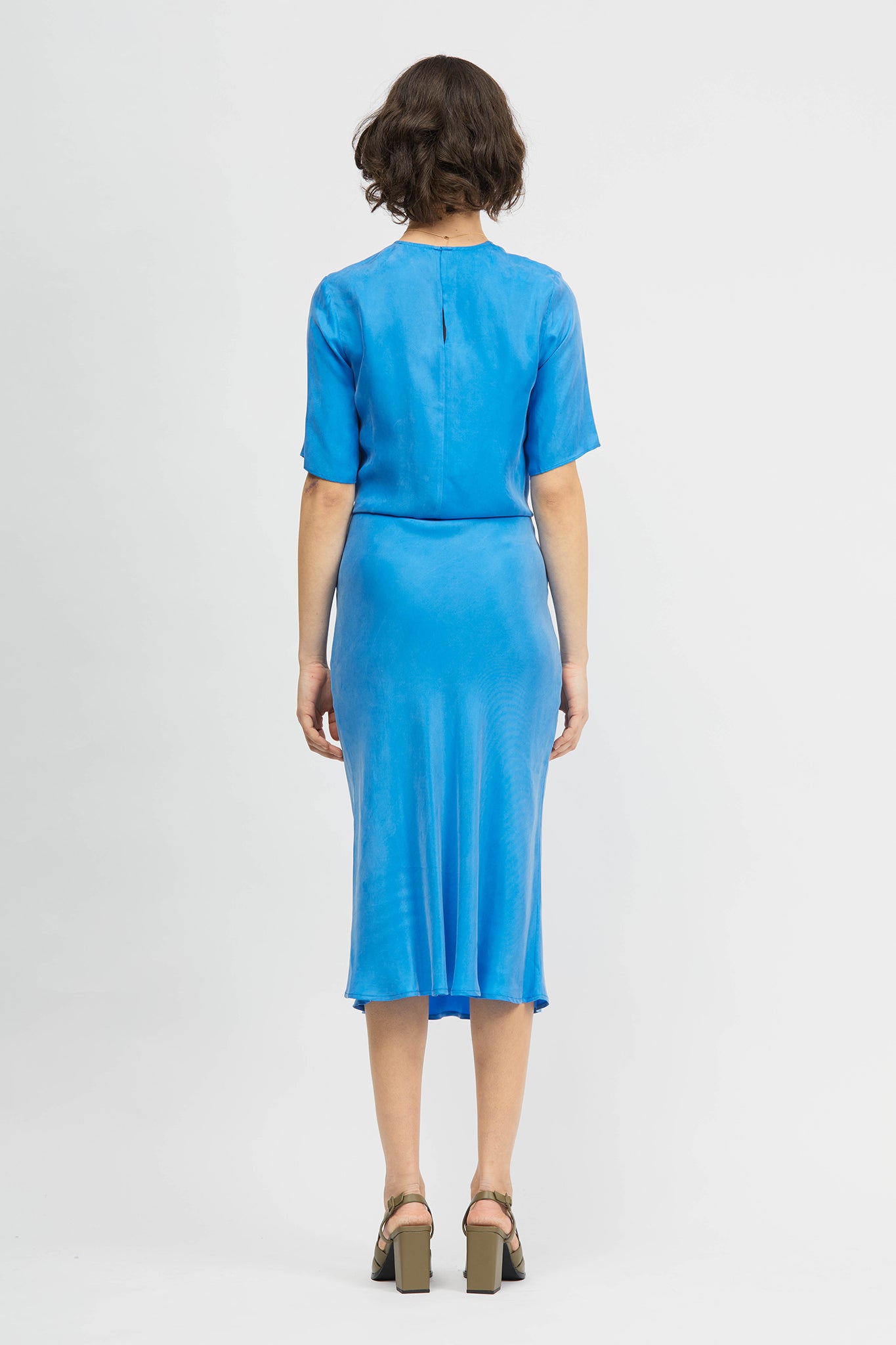 The Somang Dress is a short sleeve, mid-length style with a regular fit. This is a double layer style, with a bias-cut slip and a removable top with a tie hem detail. These two layers can be worn layered together or separately and are both made from a soft cupro blend.