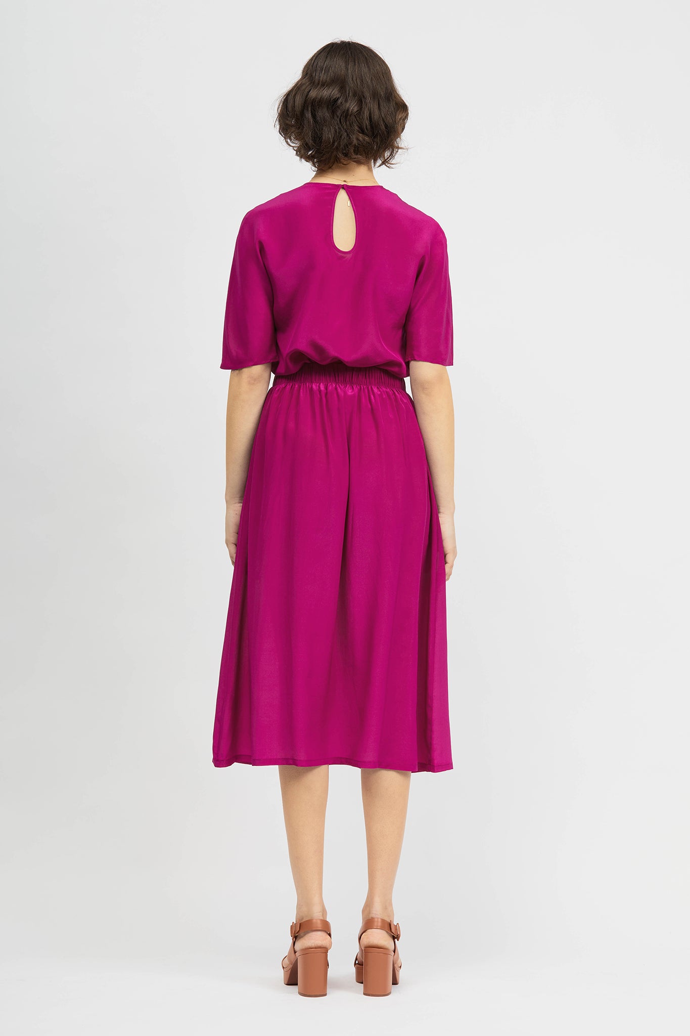 The Bingsu Skirt is a high-waisted, mid-length, regular fit style. Features include inseam pockets, a self-fabric drawcord and a wide elasticated waistband. Made in a soft and lightweight crepe de chine silk. This style can be paired back with your existing wardrobe favourites or with the Joa Top in matching fabric as a set.
