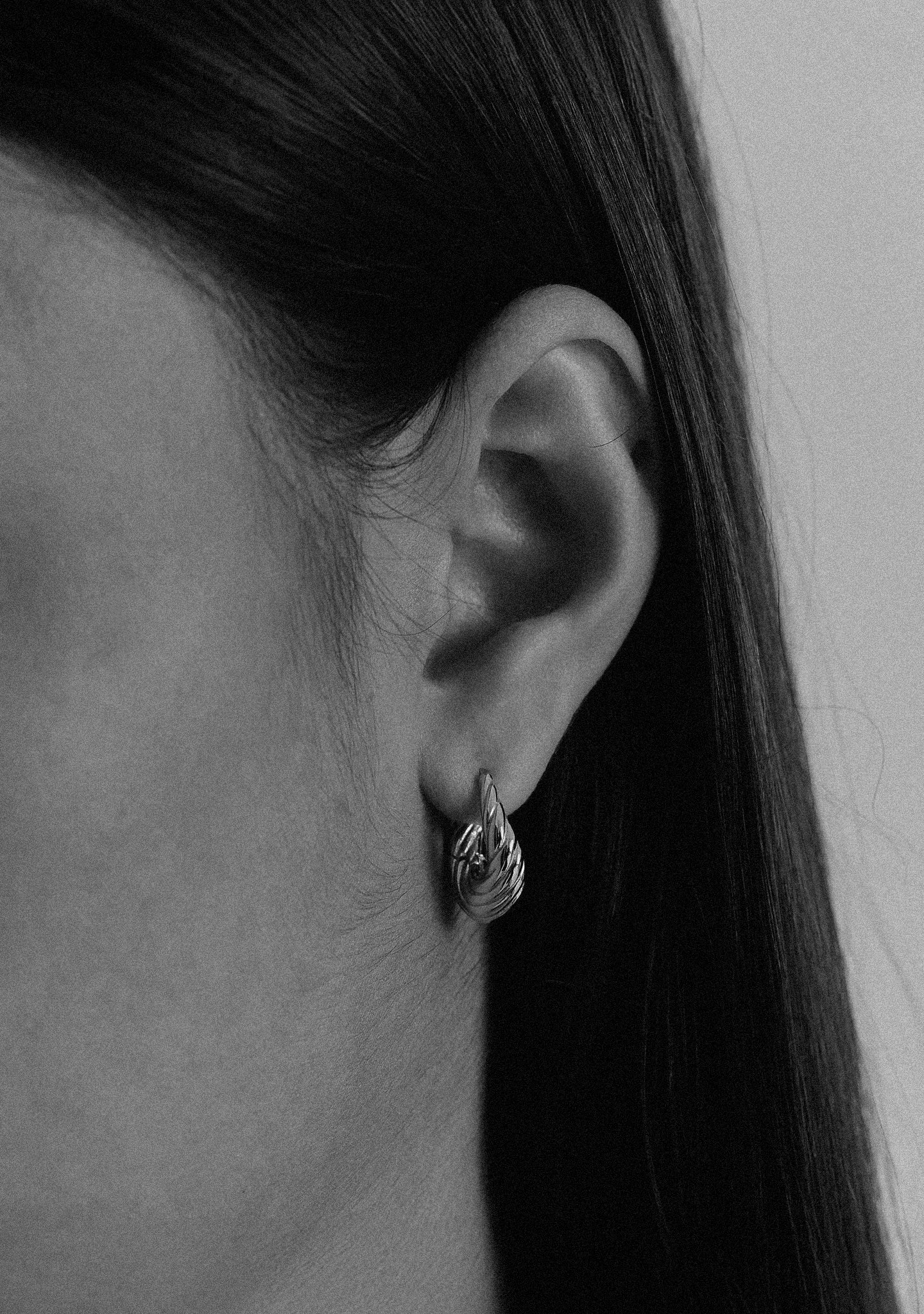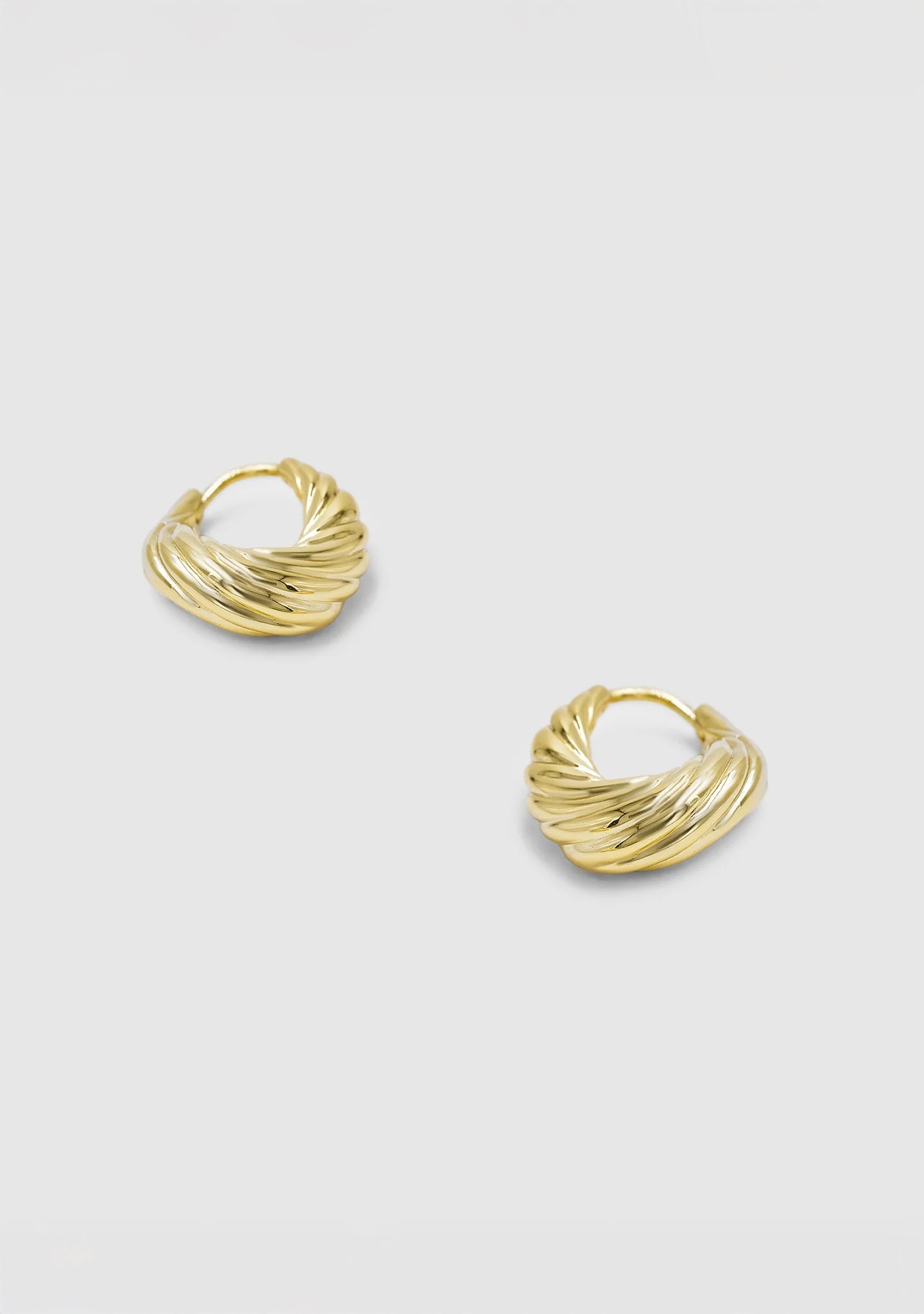A contemporary take on gilded textures, where twisted ridges are set in metal and finished in a rounded hoop design, by Australian designer Brie Leon.