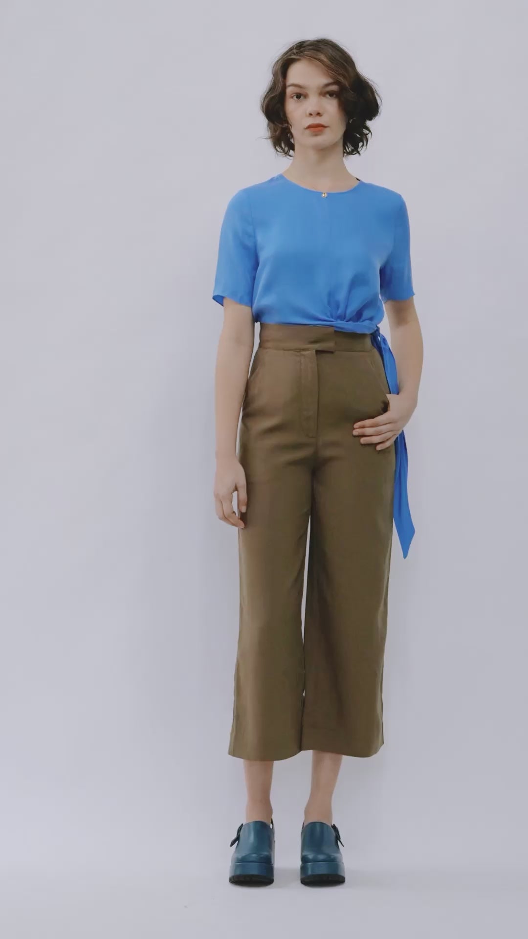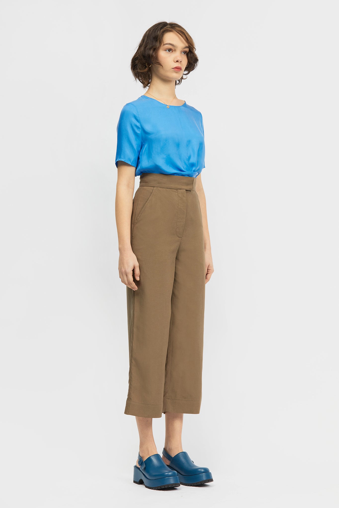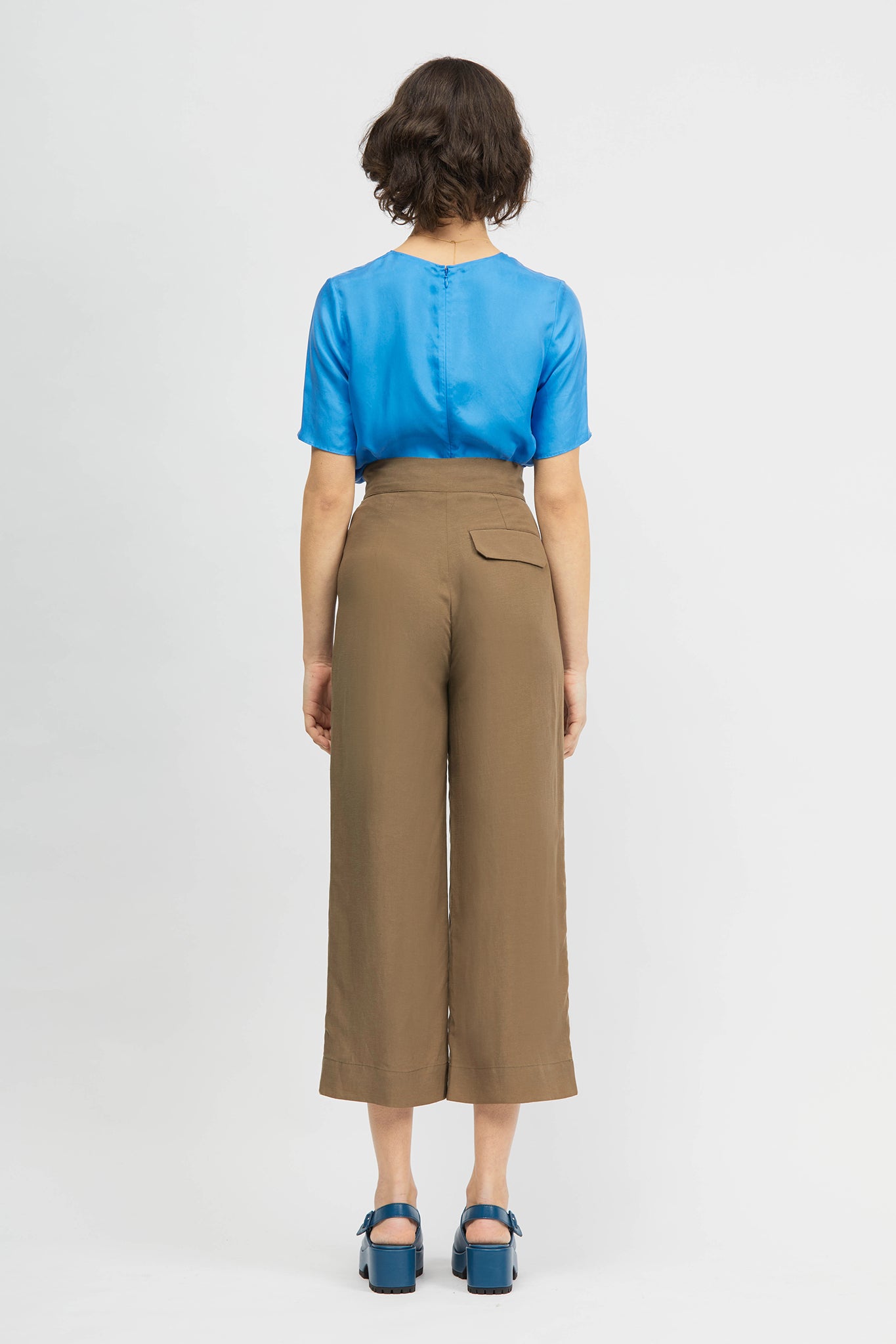 The Brisa Pant is a wide leg, high-waisted style with a cropped length. This style includes slanted front pockets and a back pocket with flap. Made in a soft tencel/ linen blend. This style can be paired back with your existing wardrobe favourites or with the Minhwa Blazer in matching fabric as a set.