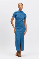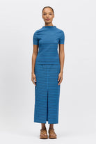 The Campo Skirt is a maxi length style featuring a front split, made from textured crinkle fabric. This style can be paired with your existing wardrobe favourites or with the Campo Top in matching fabric as a set.