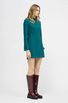 The Cirrus Dress is a long sleeve, mini-length dress in a regular fit. Design details include a high neckline, flared wide sleeves, an exposed metal back zip fastening and panelling throughout. Made in a soft but structured stretch polyester fabrication.