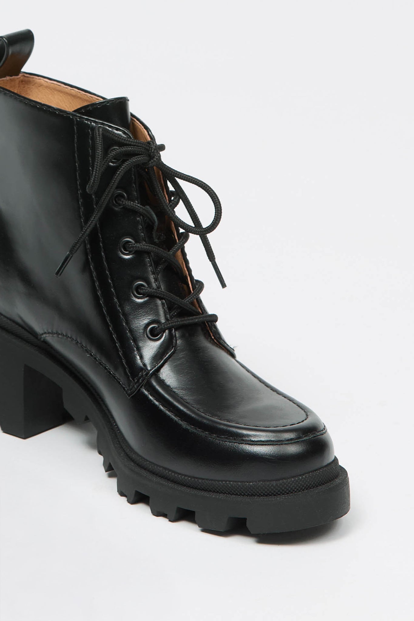 The Eldorado Boot is a round-toe, lace up style with chunky heel and lug sole. Made in a smooth oiled leather and lined in a camel colour leather inner.