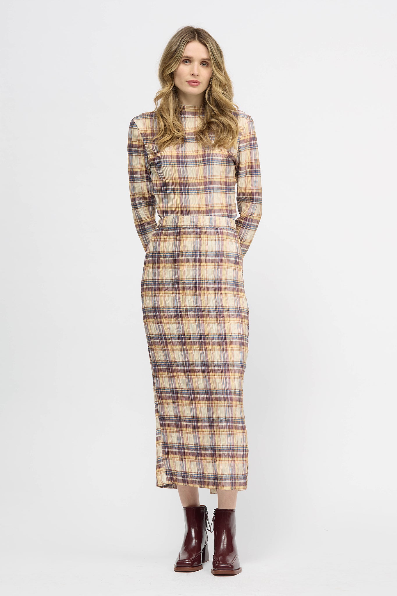 The Hakea Skirt is a high-waisted, maxi-length, pencil skirt in a relaxed fit. This style offers a back slit for ease of movement, waistband and side seam invisible zip closure. Made in a pleated fabrication with high stretch for comfort. This style can be paired back with your existing wardrobe favourites or with the Wave Top in matching fabric as a set.
