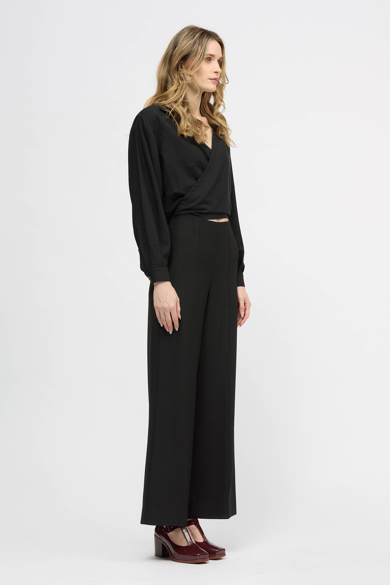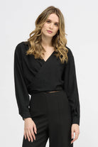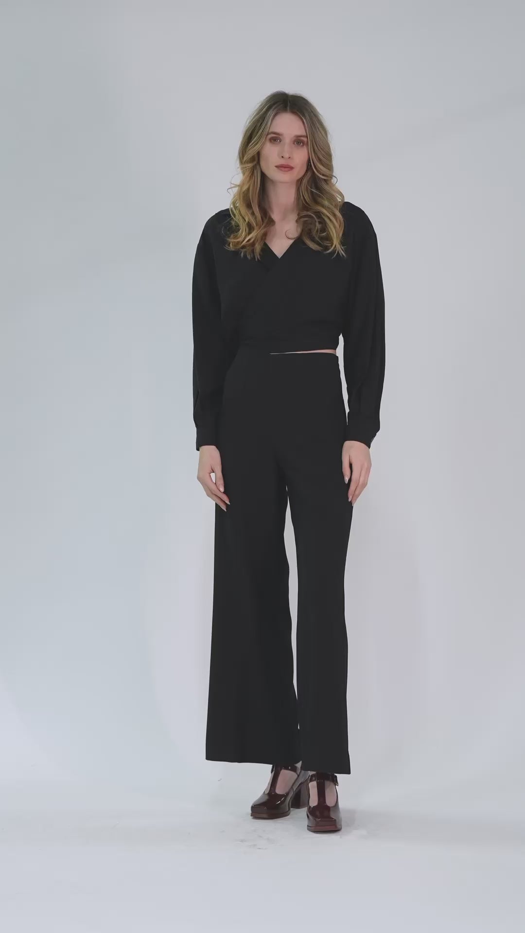The Loorana Top is a long sleeve wrap style in a regular fit. Features include an open collar, long sleeves with cuff and button detail and a front wrap that can be tied towards the side or back. Made in a soft and breathable tencel/ linen blend.
