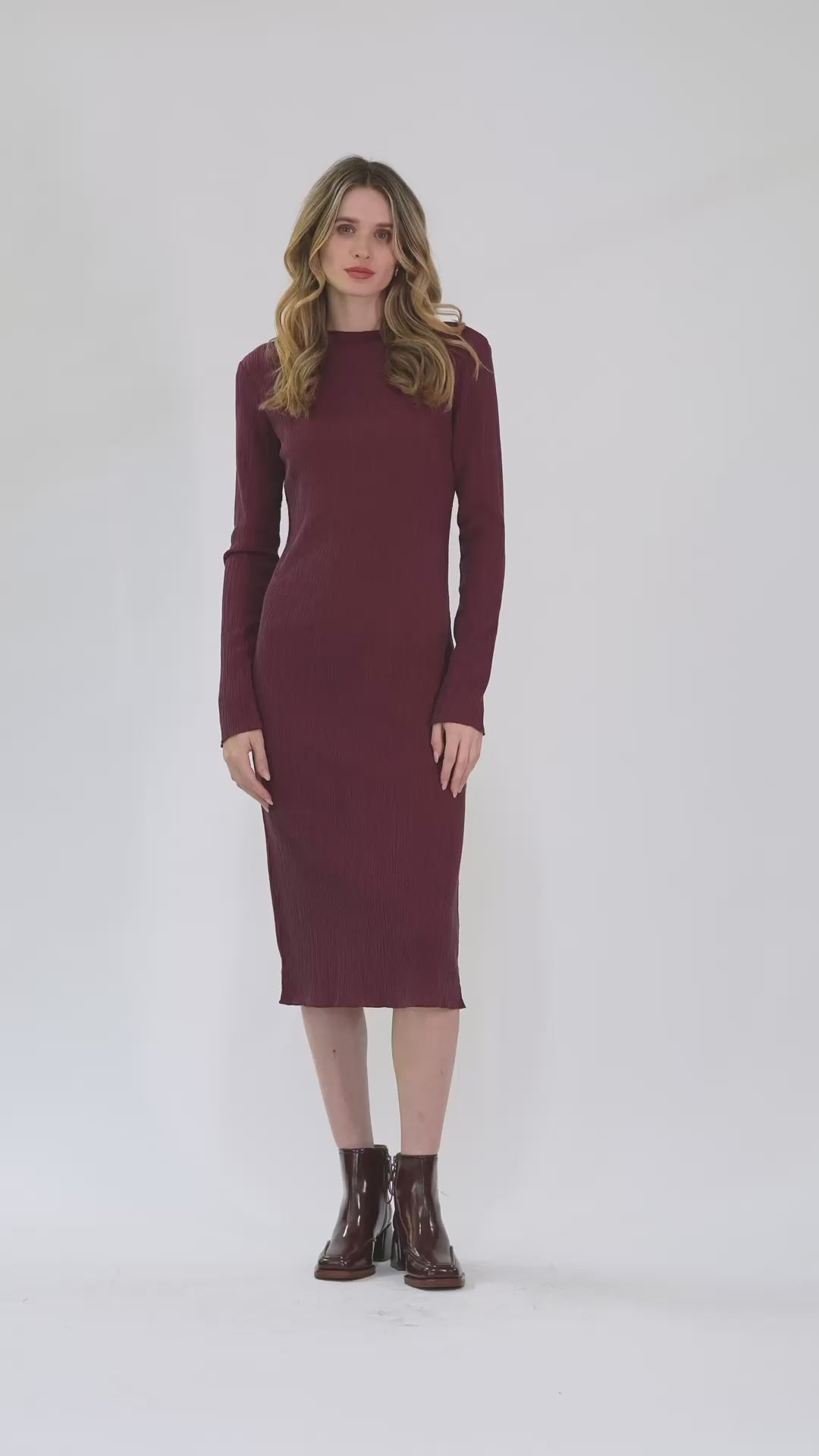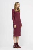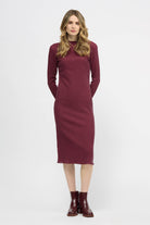 The Riptide Dress is a long sleeve, mid-length, fitted style designed with a high neckline. This style is finished with soft baby lock at neckline and hems. Made from a soft tencel/ polyester blend fabrication with high stretch for comfort.