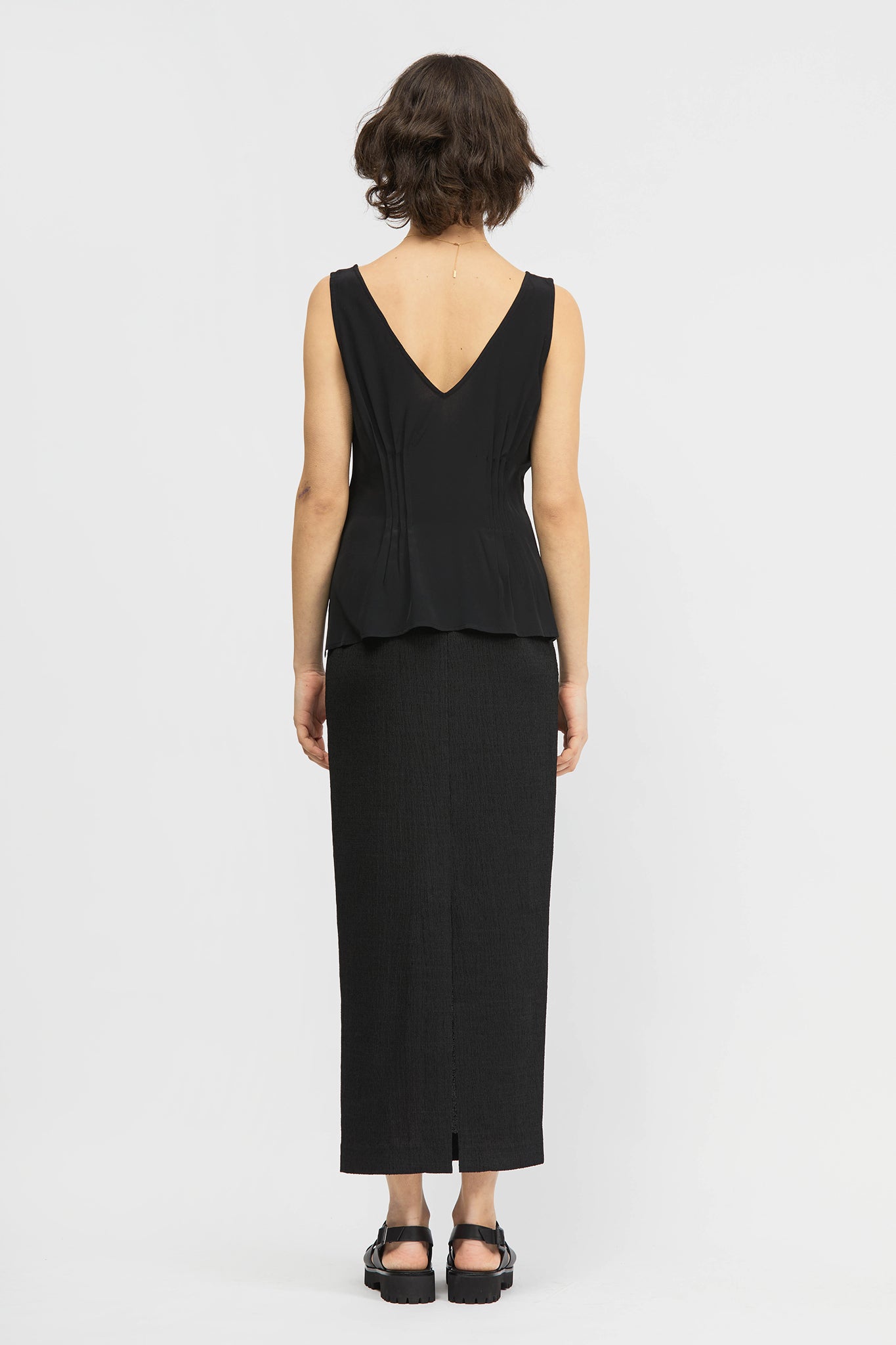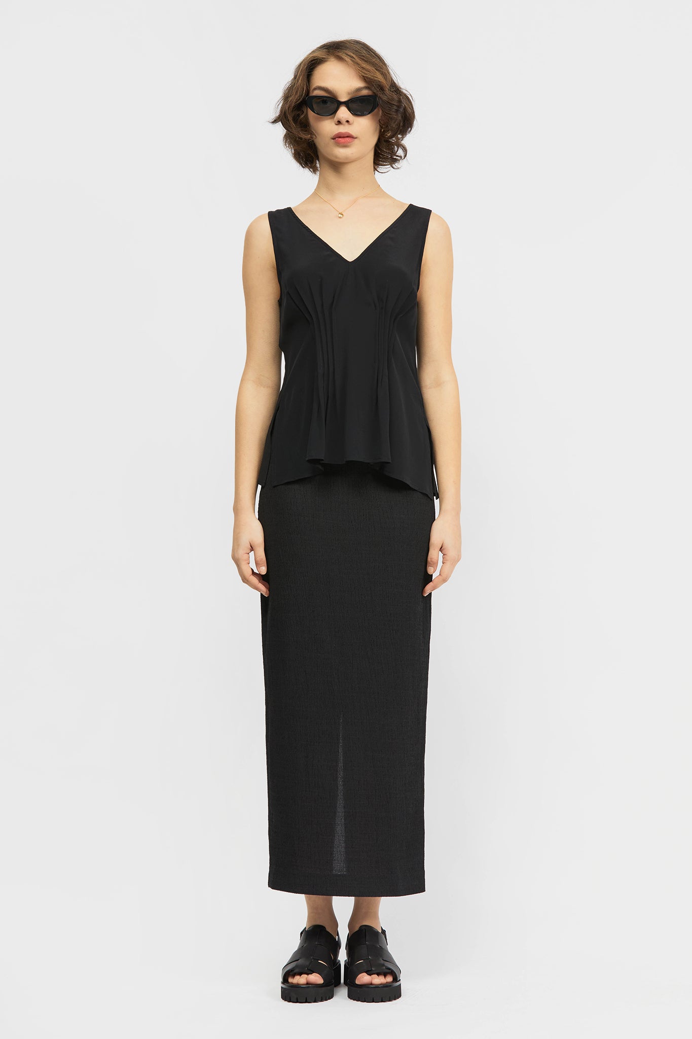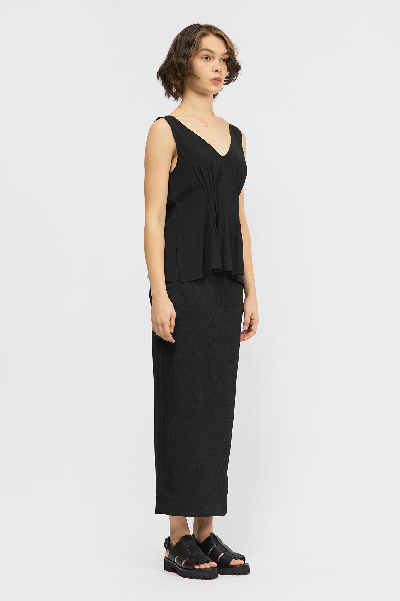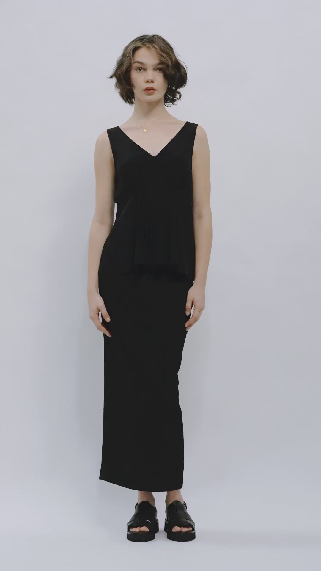 The Soju Top is a sleeveless, regular fit style. Features include a deep V-neckline and pleat detailing at the front and back. Made from a soft and flowy acetate blend. This style can be paired back with your existing wardrobe favourites or with the Pado Pant in matching fabric as a set.