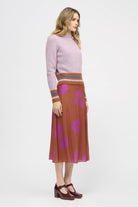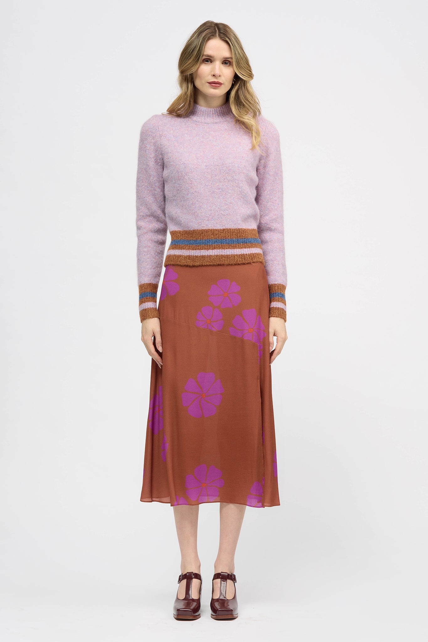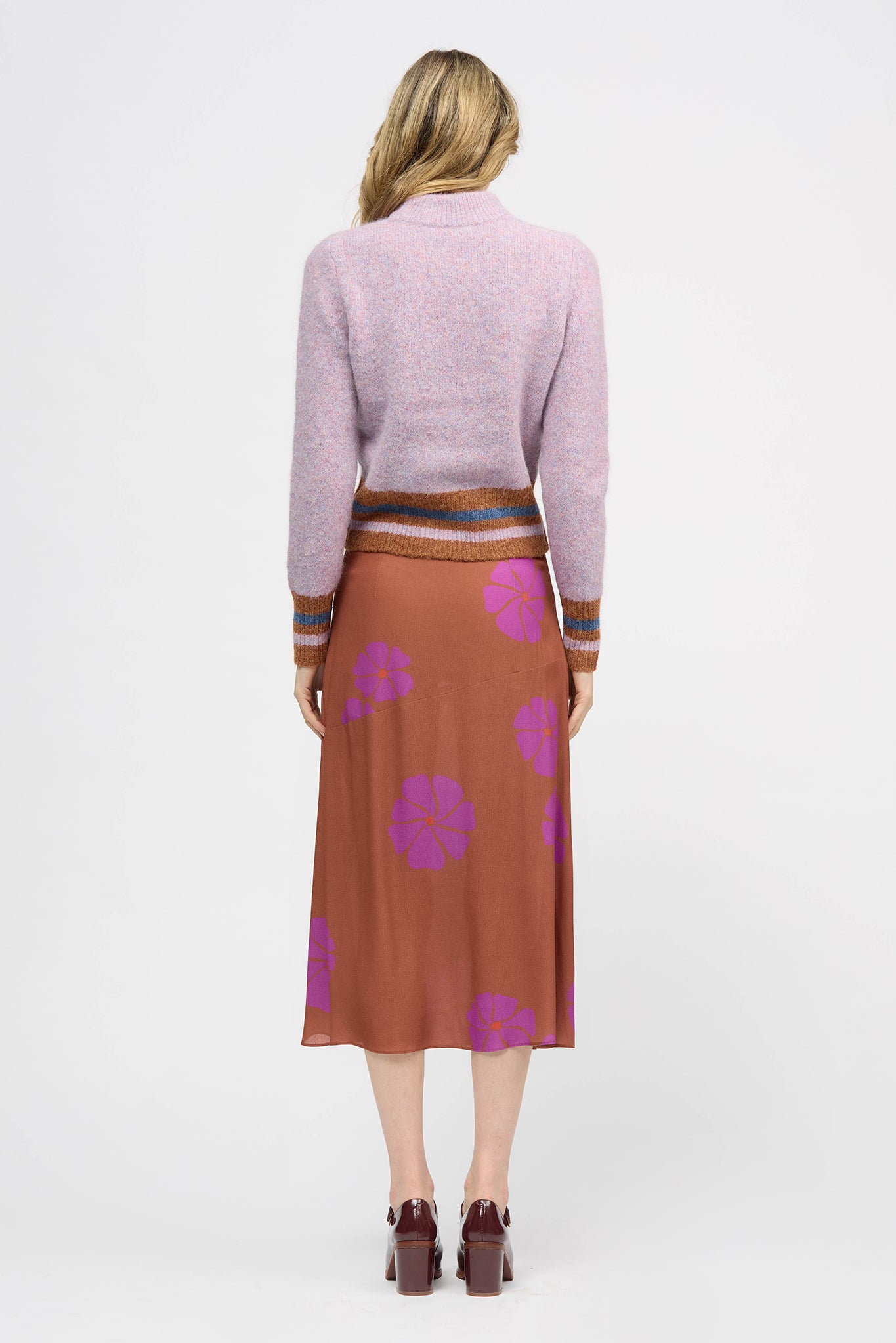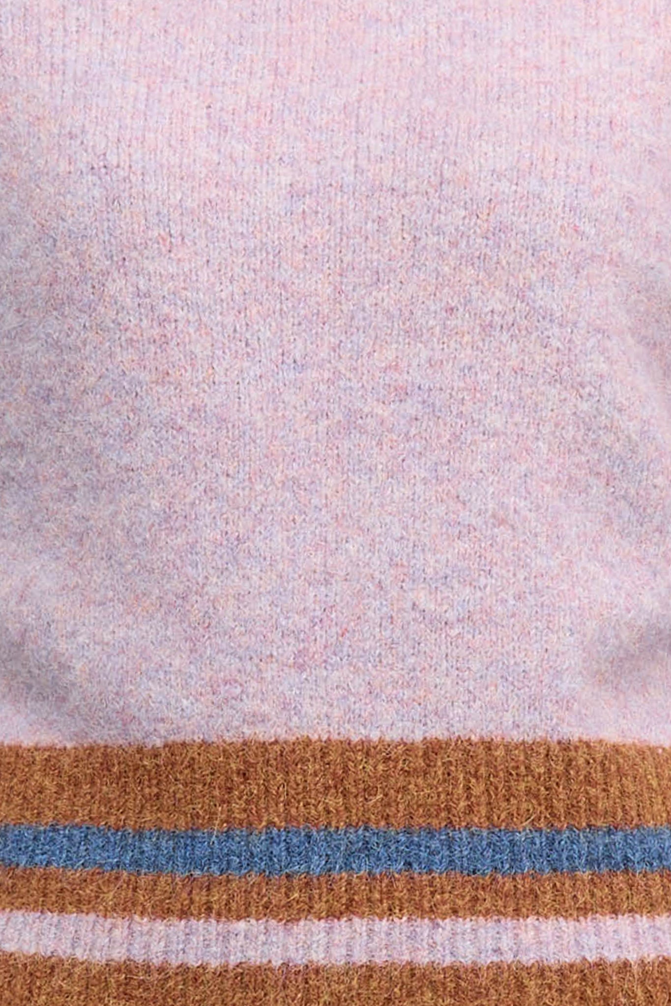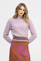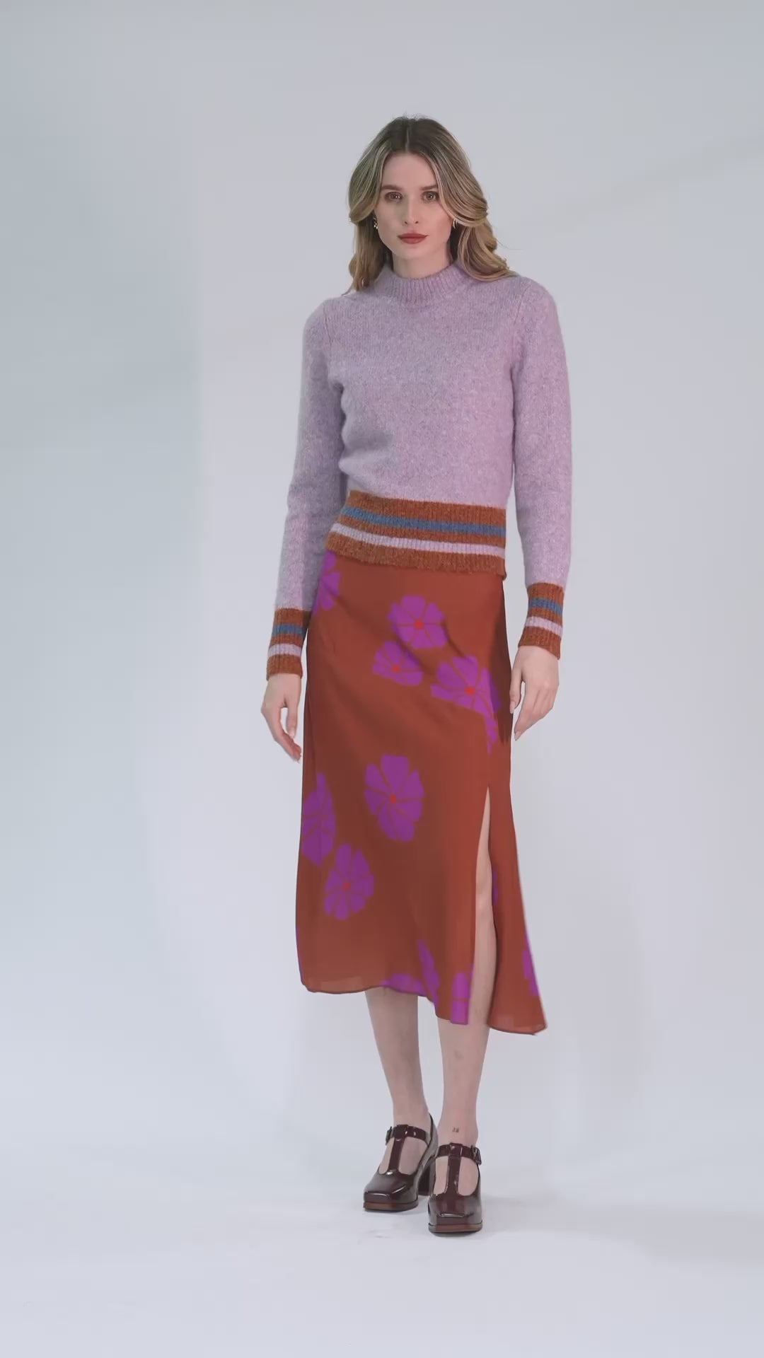 The Lavinia Jumper is a regular fit, pull-over style with long sleeves. Features include a contrast coloured wide rib with stripe detail at hem and cuffs. Made in a soft and cosy alpaca wool and acrylic blend.