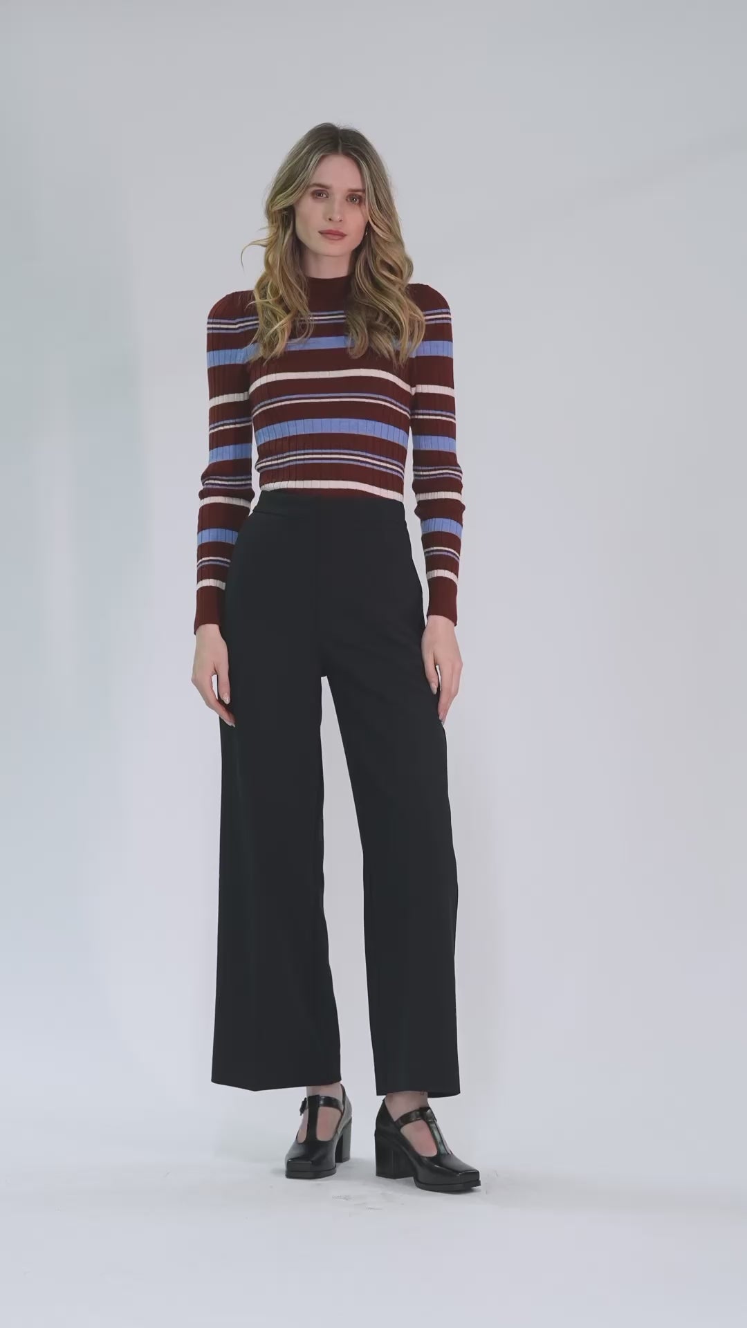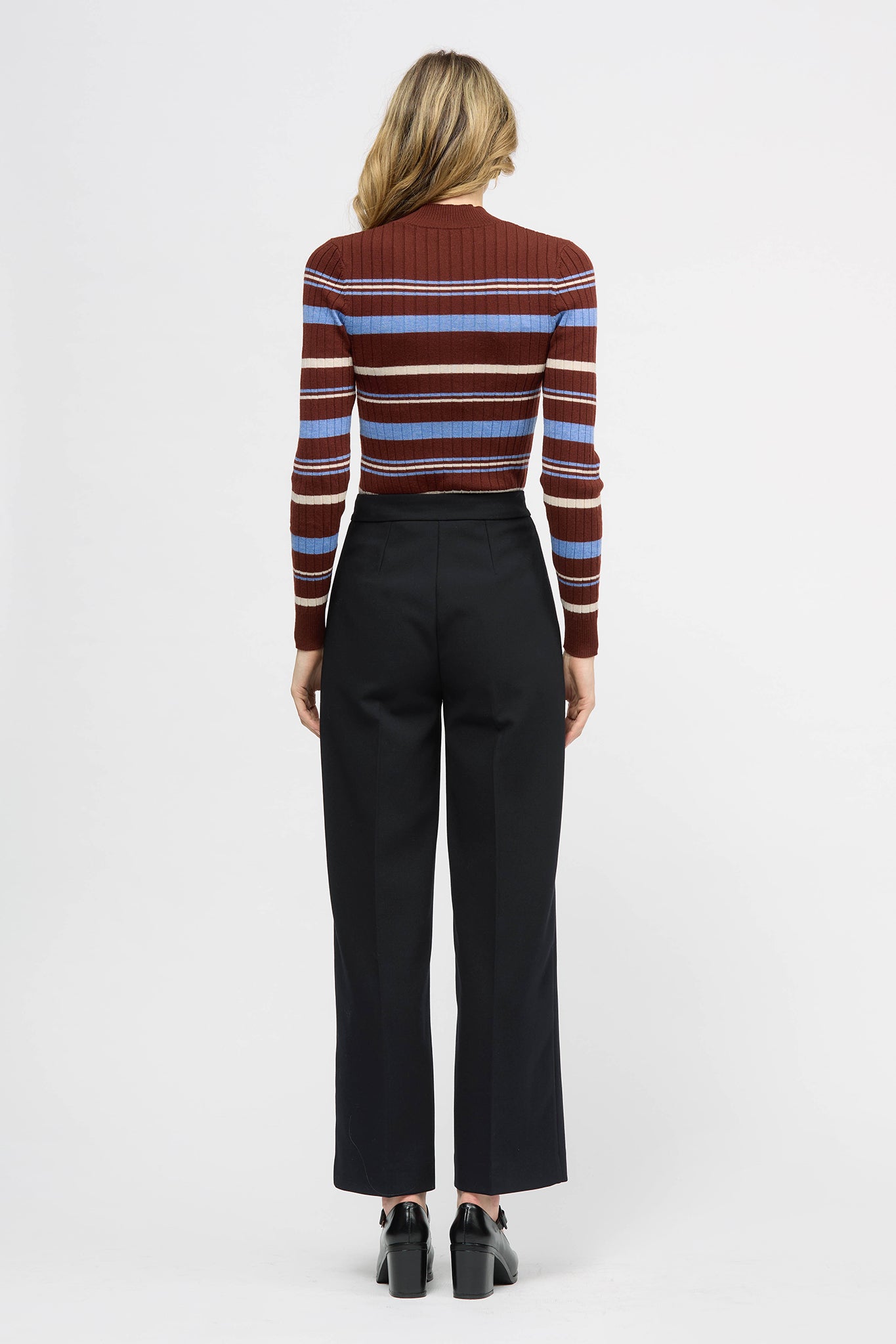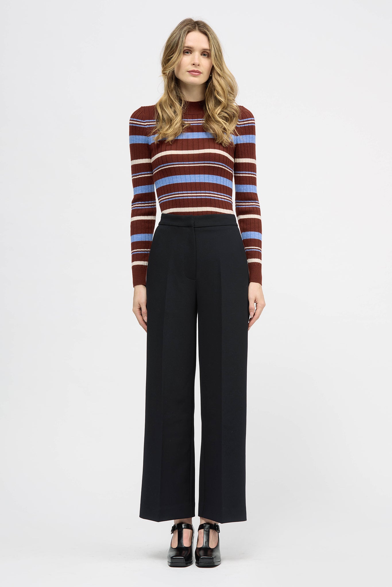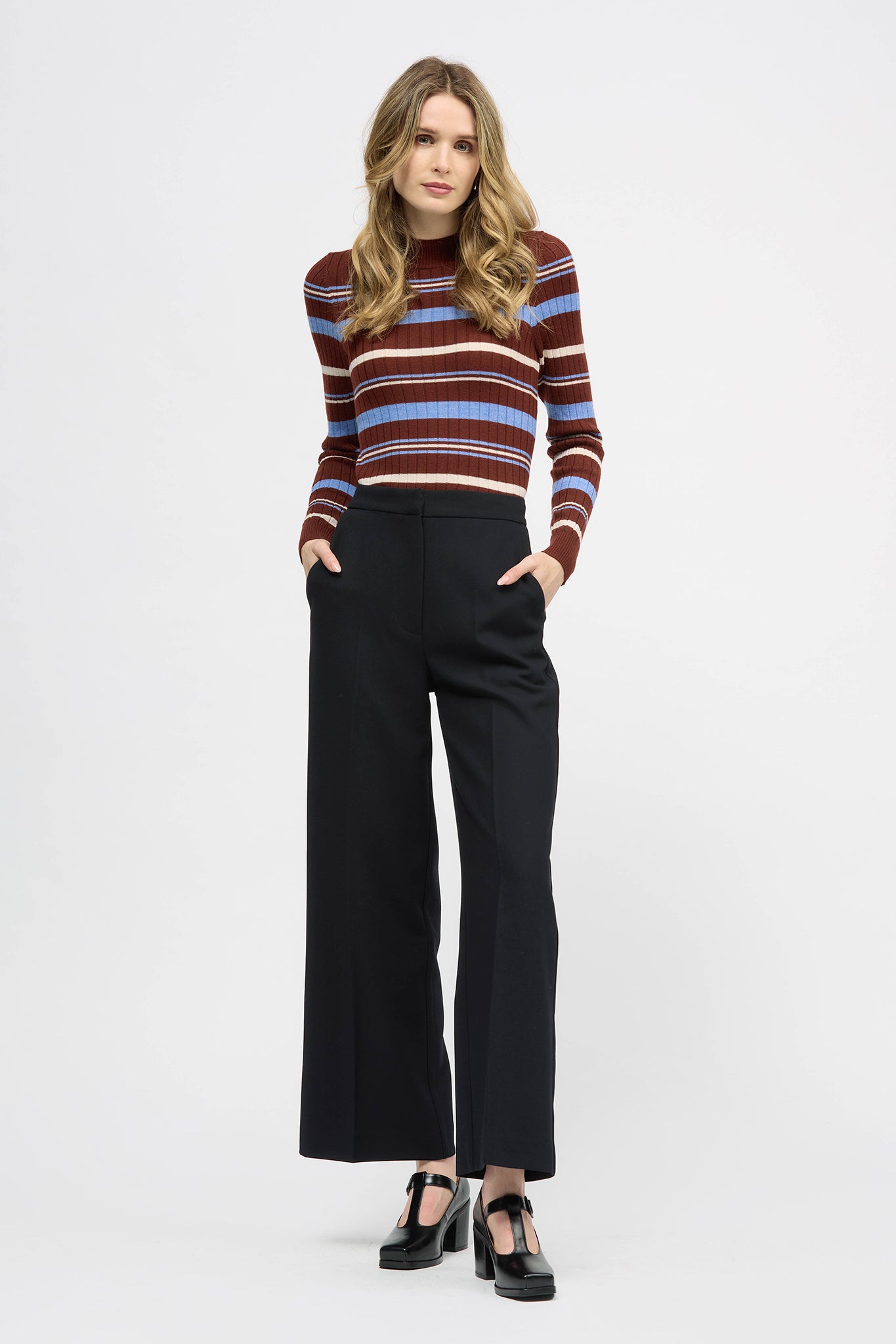 The Aimsir Trouser is a high-waisted, relaxed leg trouser in a full length. This style includes slanted front pockets and back darts for a flattering fit through the waist. The front opening fly includes an interior zip, and fly extension which conceals the hook and eye tabs and an interior button. Made from a soft viscose/ polyester blend with slight stretch. This style can be paired back with your existing wardrobe favourites or with the Musgrave Coat in Dark Navy for a matching set.