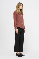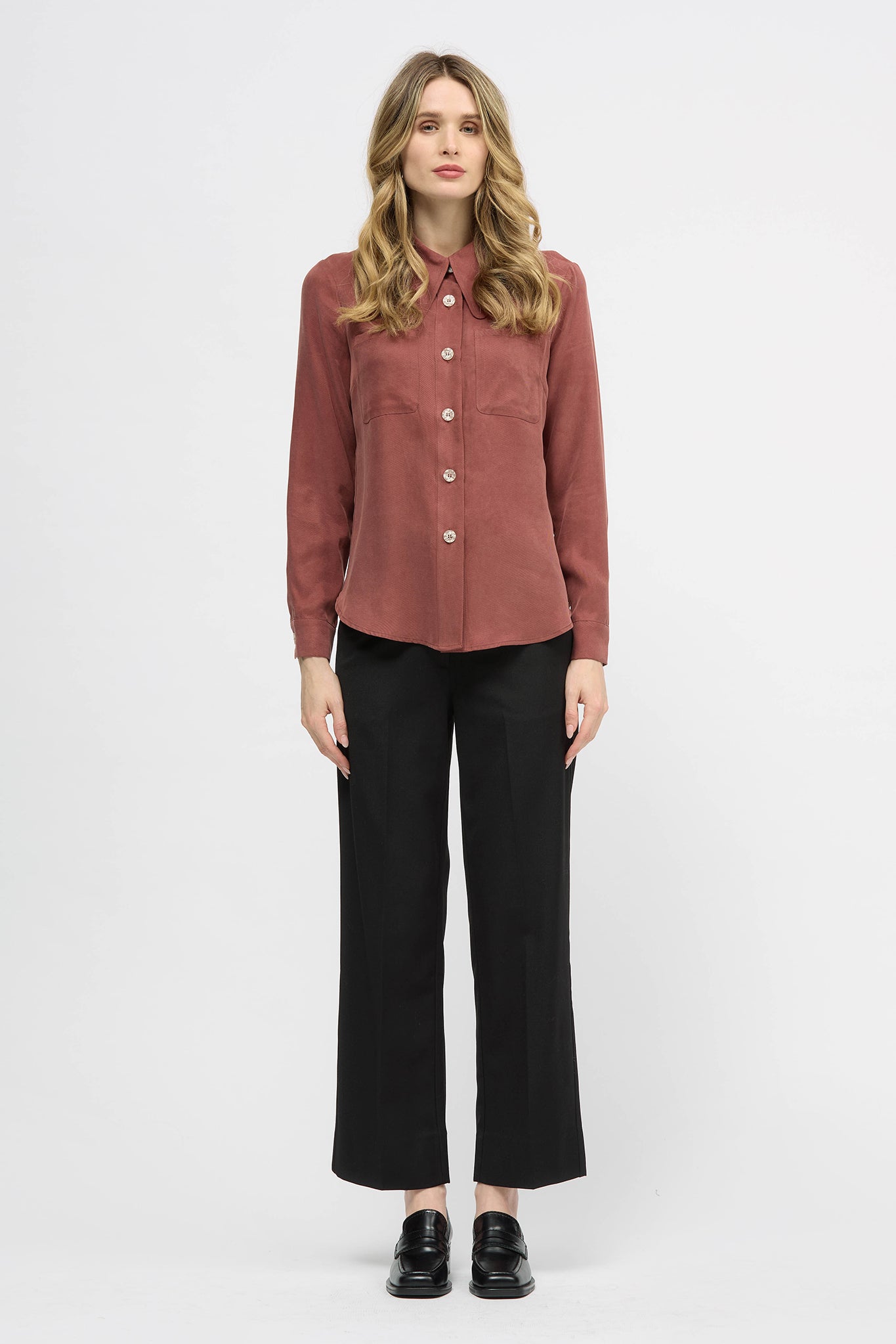 The Morgan Shirt is a regular fit, button-up style with contrasting speckled cream buttons, patch pockets and an oversized collar. Made in a soft Tencel twill fabrication.