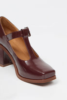 The Pandani Heel is a square toe style with self-covered block heel. This style features a T-bar design and self-covered buckle closure. Made in smooth oiled leather and lined in a camel colour leather inner.