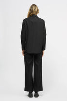 The Penny Shirt is a long sleeve, button up style in an oversize fit. It features an oversized front chest pocket, button-up cuffs, scooped hem that sits longer at the back and a classic collar. Made in a crisp cotton/ tencel blend.