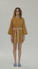 The Amani Dress is a mini-length, relaxed-fit shift dress with bell sleeves. This style includes búl’s house-designed embroidery in a contrasting cream along the lengths of the sleeve as well as along the detachable belt tie, which can bring in the silhouette at the waist if desired. This style has inseam pockets at the side body and a rounded neckline with a slit in the centre back which leads to the back-neck button fastening. Made with a Cotton seersucker fabrication.