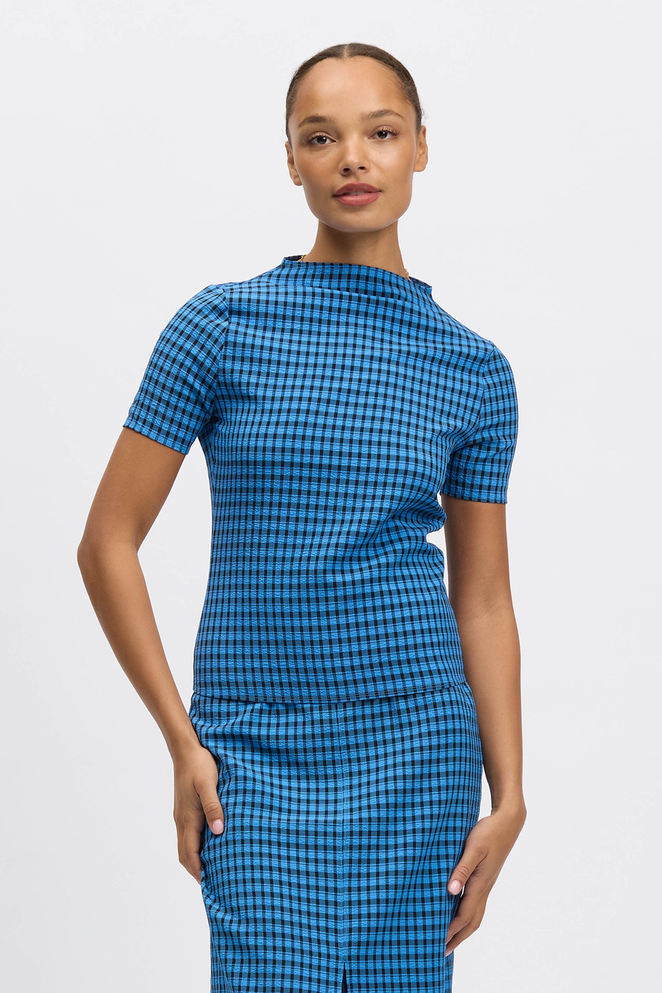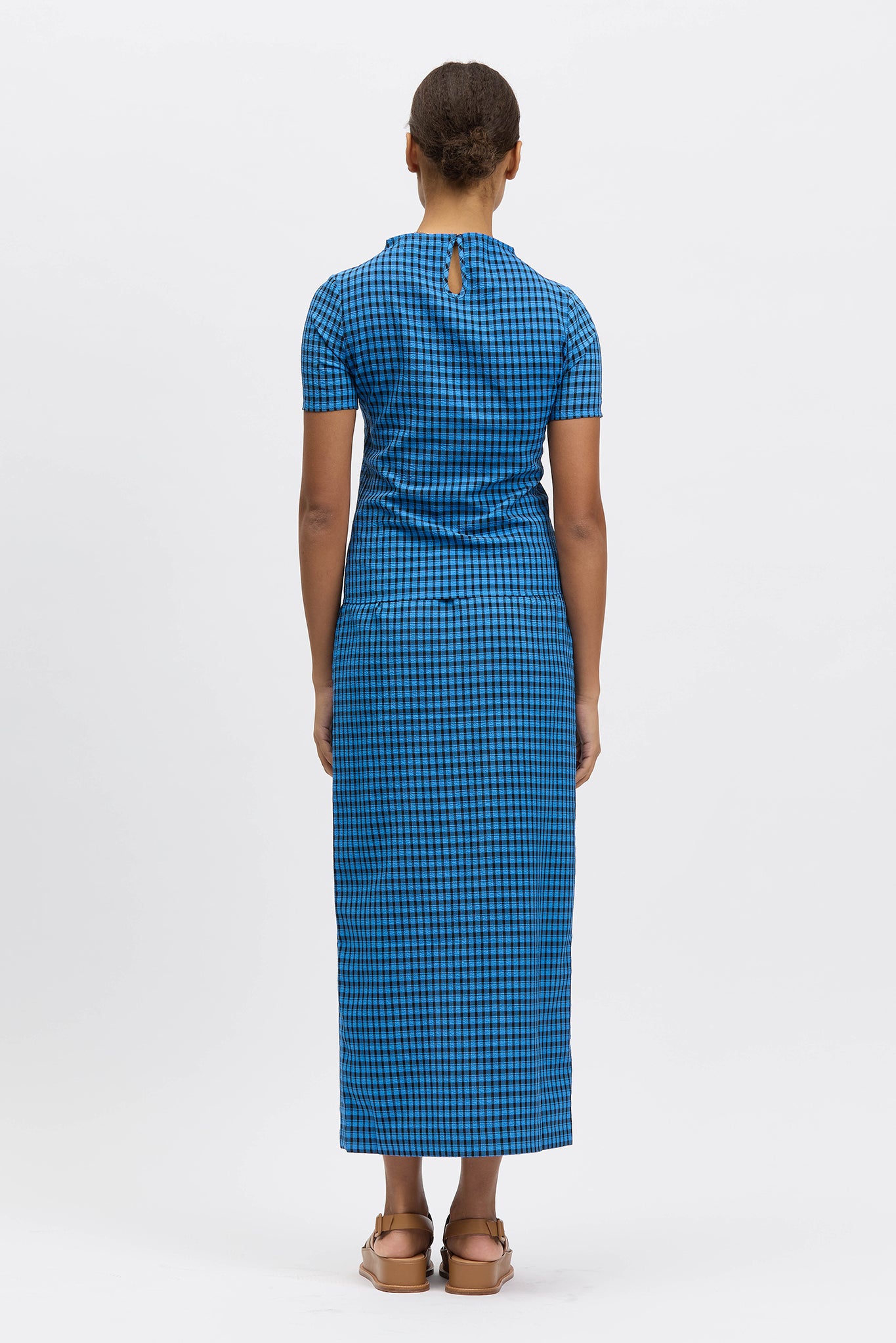 The Campo Top features a high neckline at both the front and back, made from a textured crinkle fabric. This style can be paired with your existing wardrobe favourites or with the Campo Skirt in matching fabric as a set.