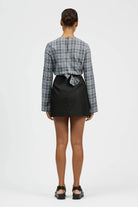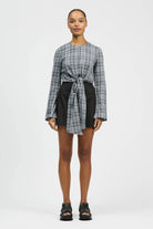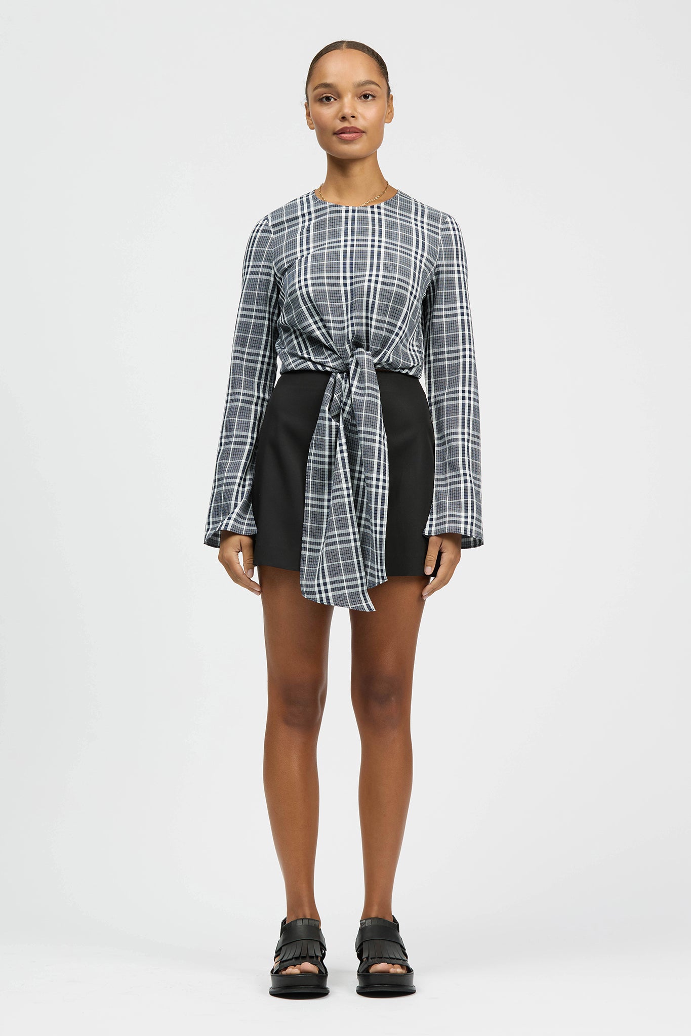 The Goddag Top is a long sleeve, regular fit style. This style offers front ties which can be wrapped around the body, fastened at the front, left hanging or tucked in. Made in a soft seersucker stretch fabrication.