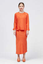 The Herbata Skirt is a high-waisted, mid-length style. This style is cut on the bias, creating a flattering drape on the body. The Herbata Skirt includes an elasticated interior waistband making for a comfortable fit. Made in a smooth Viscose fabrication. This style can be paired back with your existing wardrobe favourites or with the Fontanna Top in matching fabric as a set.