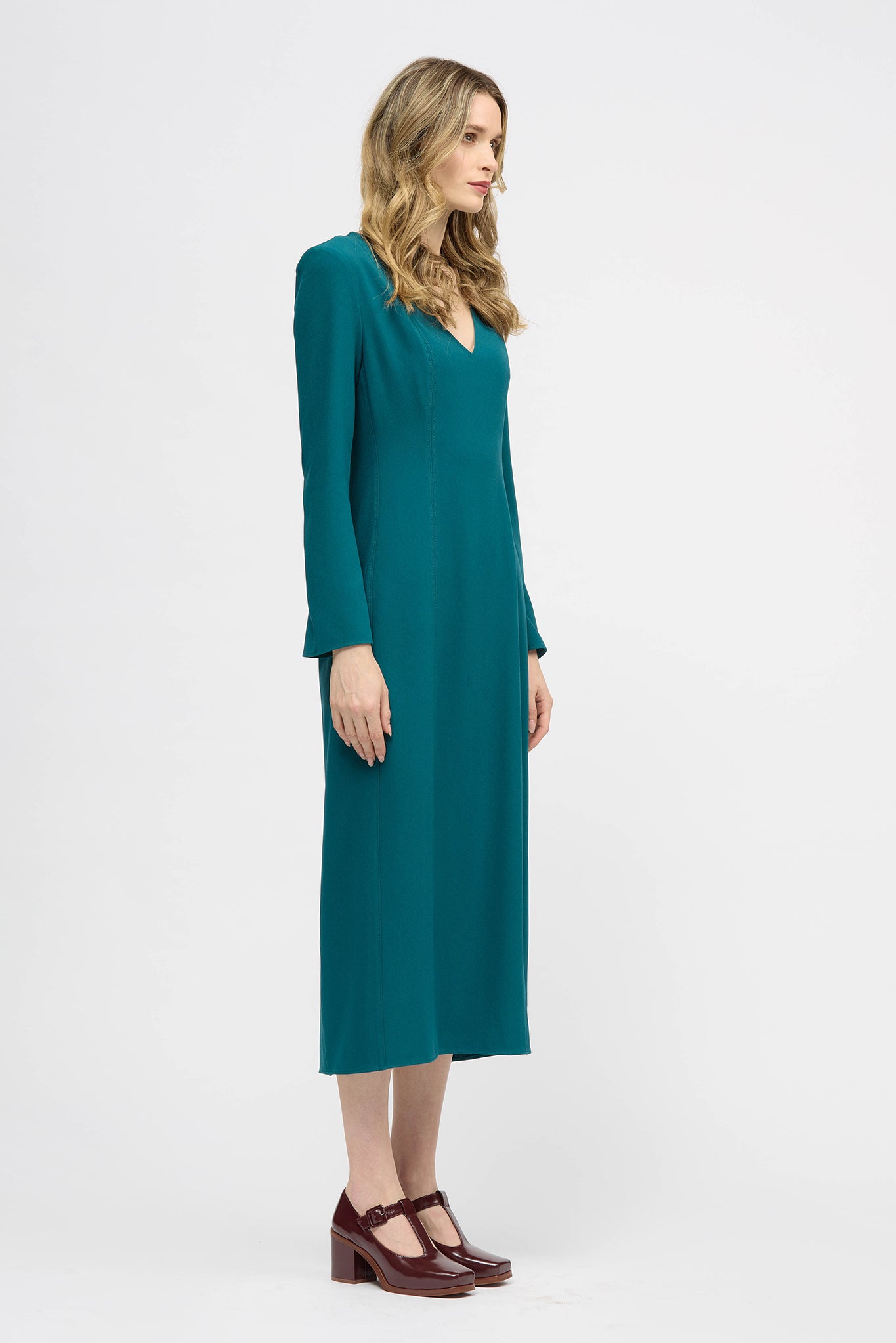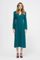 The Mimi Dress is a full length, long sleeve dress in a regular fit. Features include a deep v-neckline, panelling throughout, centre back zip fastening and a back split at hem for ease of movement. Made in a soft but structured stretch polyester fabrication.