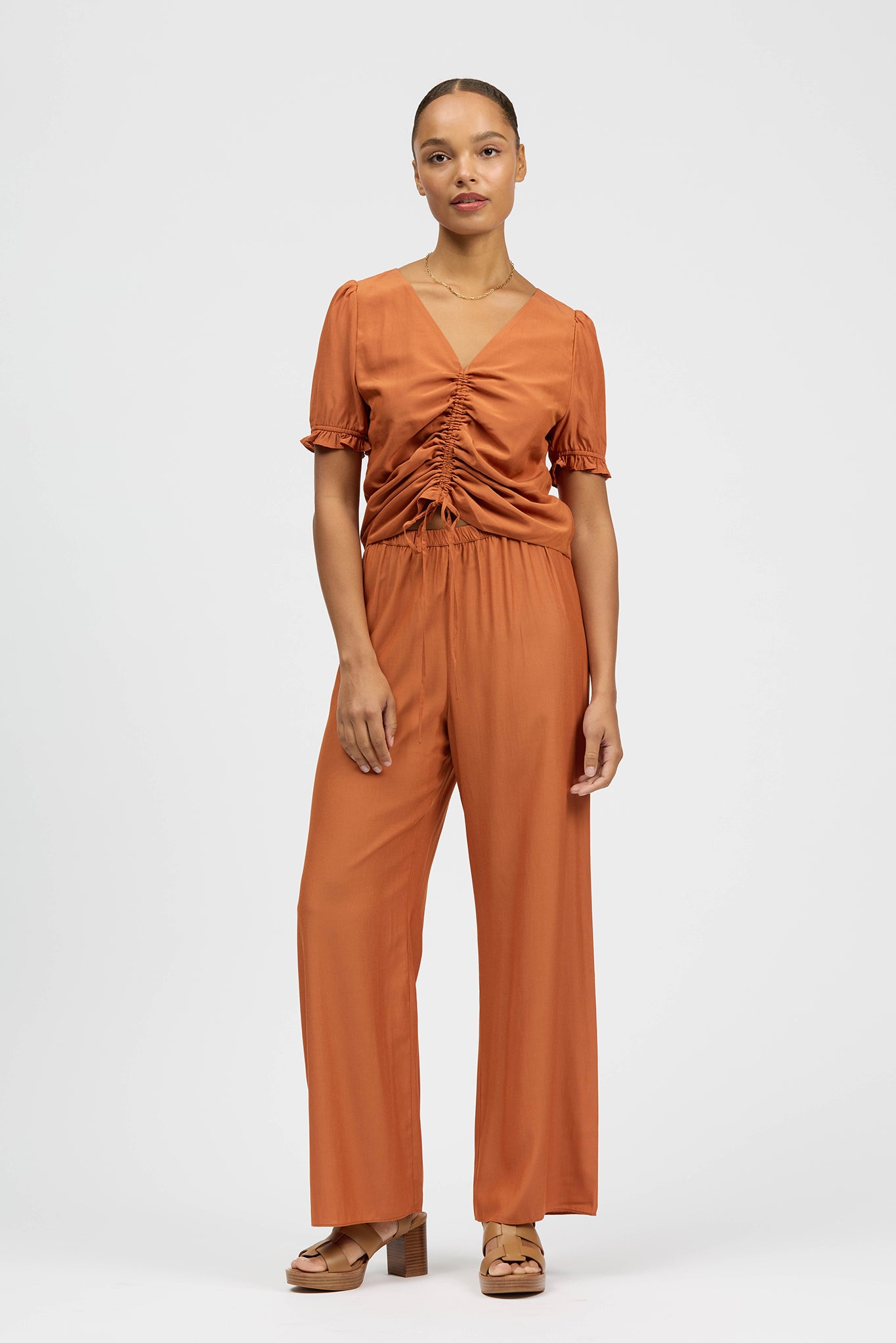 The Pado Pant is a relaxed wide leg style featuring a comfortable elastic waistband. This style can be paired with your existing wardrobe favourites or with the Reuna Top, or Irazu Top in matching fabric as a set.
