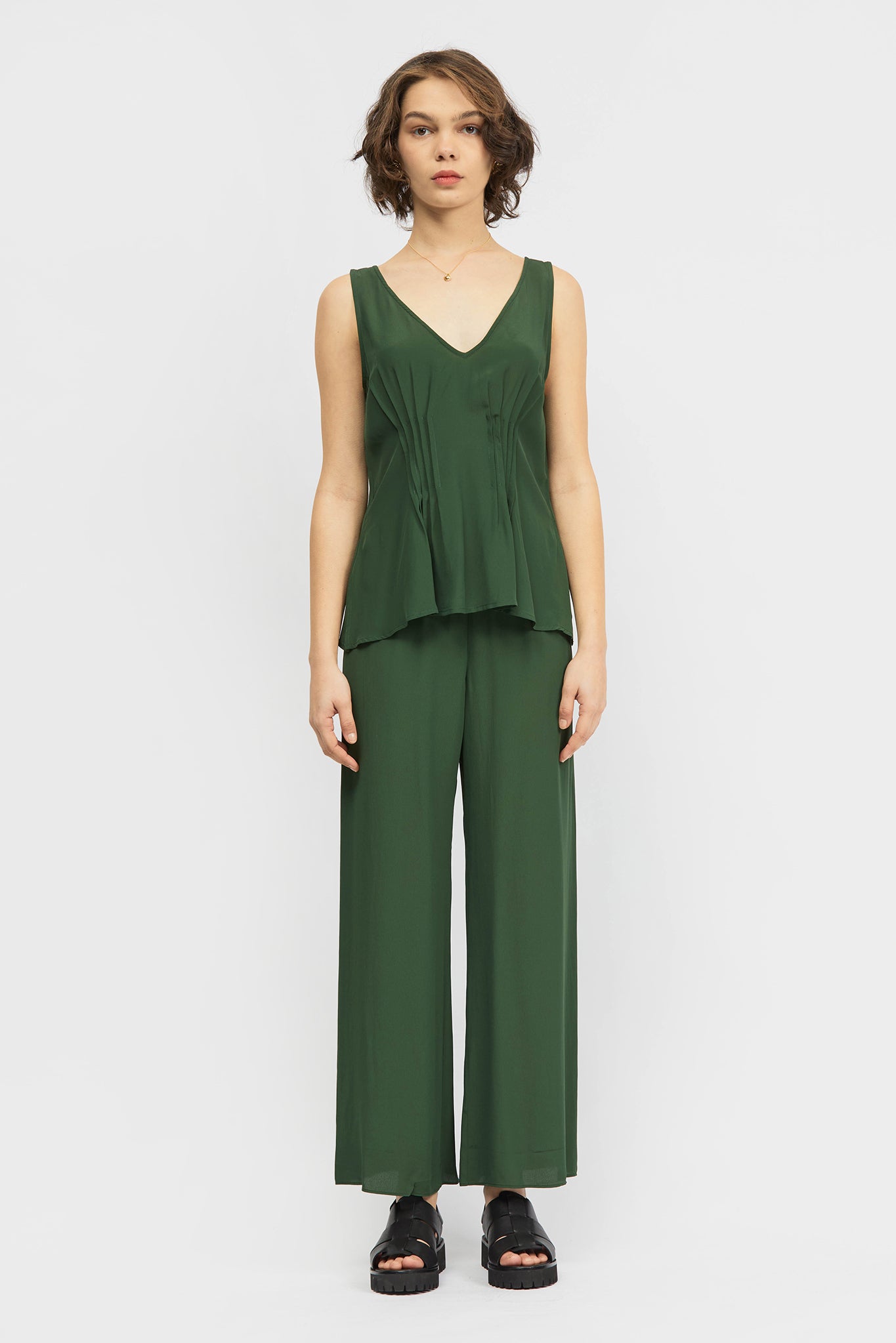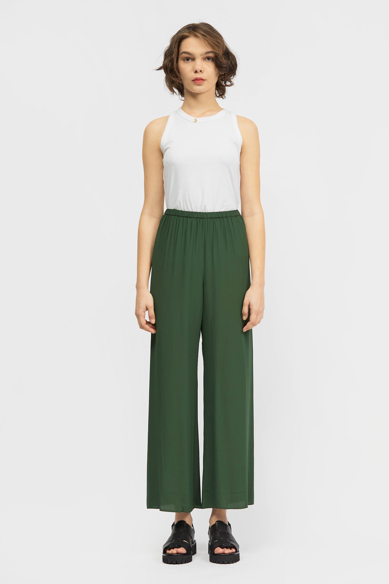 The Pado Pant is a full-length, high-waisted, wide leg style. This style includes a narrow elasticated waistband and is made from a soft and flowy acetate blend. This style can be paired back with your existing wardrobe favourites or with the Soju Top and Gamsa Robe in matching fabric as a set.
