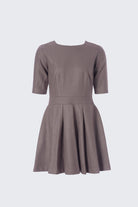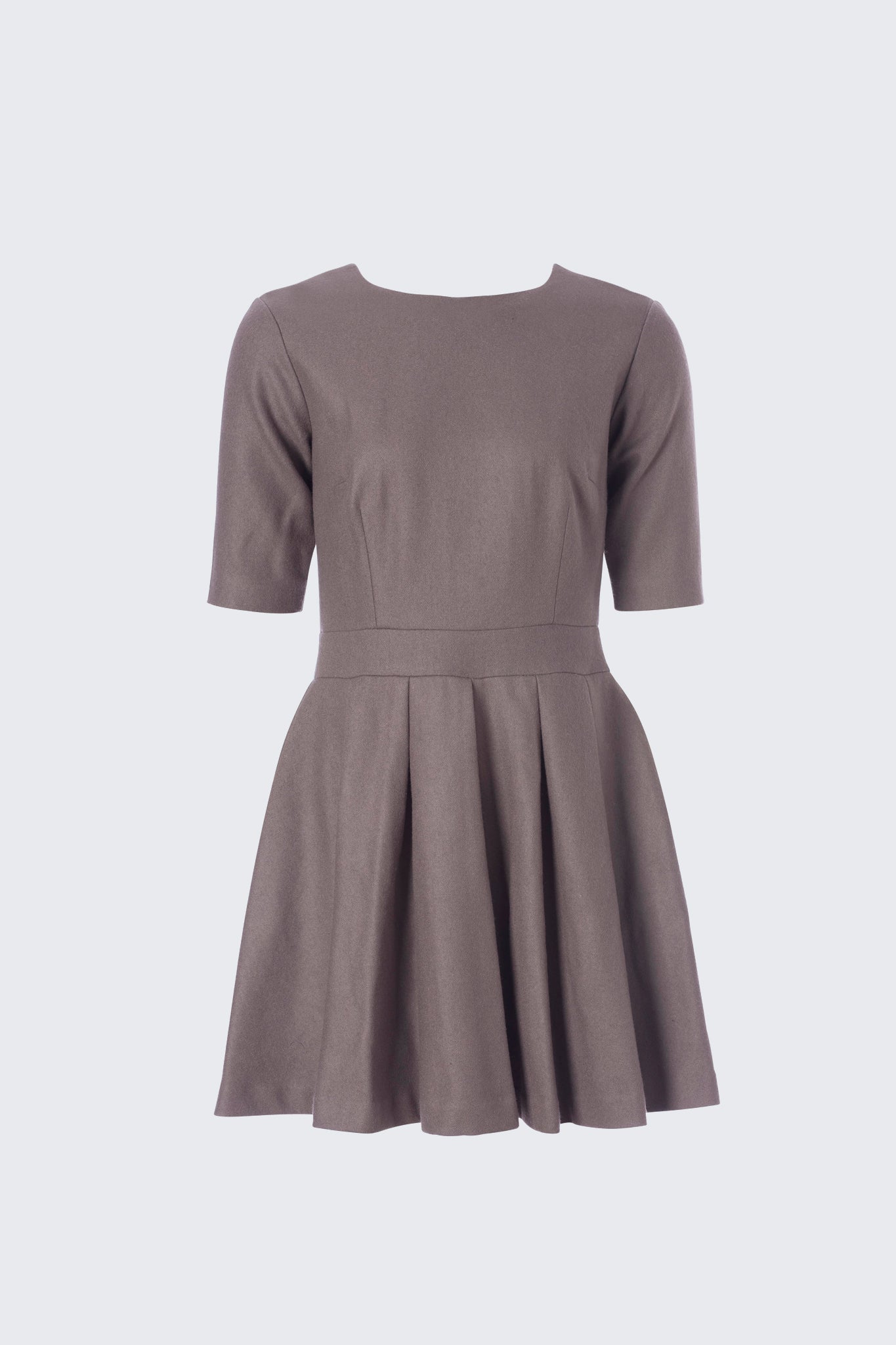 The Sandsend Dress is a midi style featuring 3/4 sleeves, crew neckline, long exposed zipper at the back and offers a fitted to pleated silhouette with slit side pockets. Made in a heavy wool/viscose blend and is fully lined.