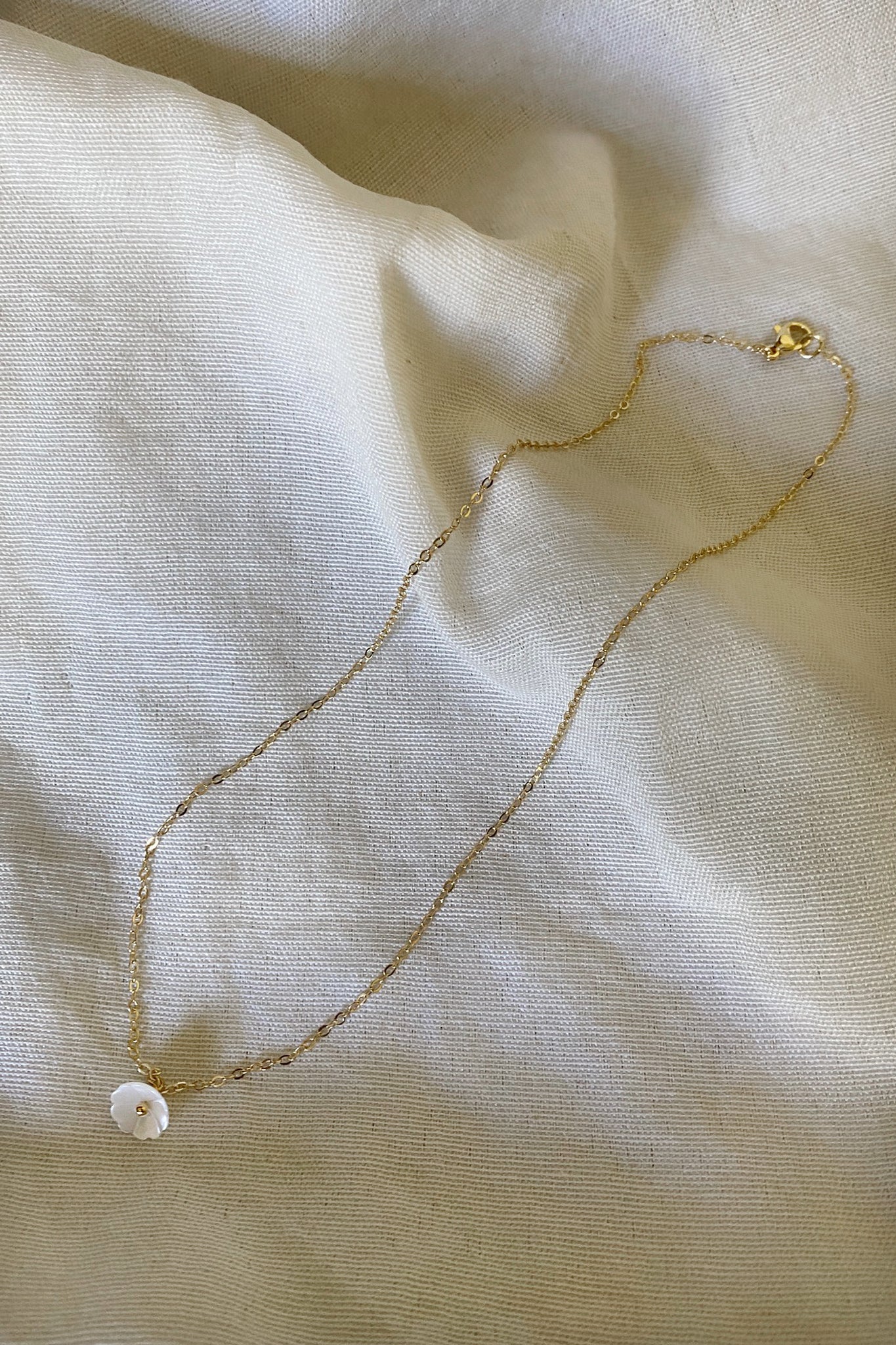 The Flower Necklace by Australian designer Suru Studio is a delicate solo statement.
